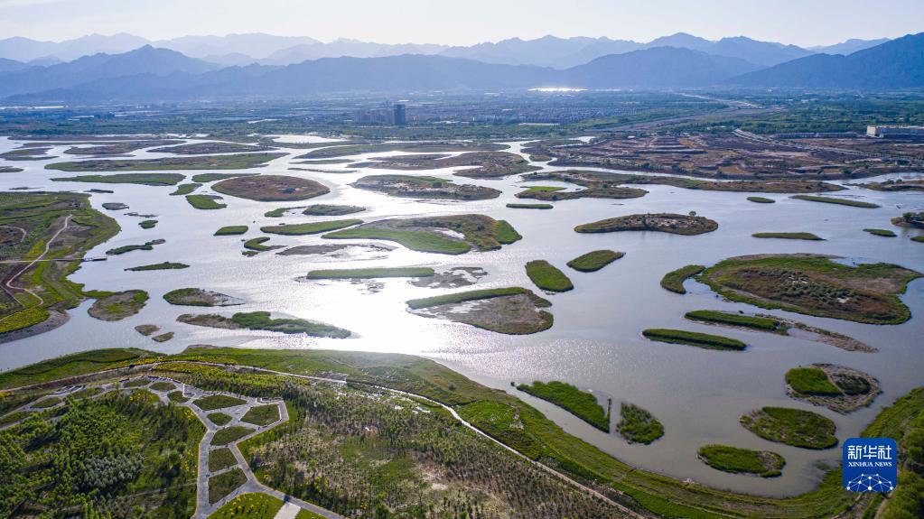 寧夏石嘴山市星海湖(2022年5月30日攝,無(wú)人機照片)。新華社記者 楊植森 攝