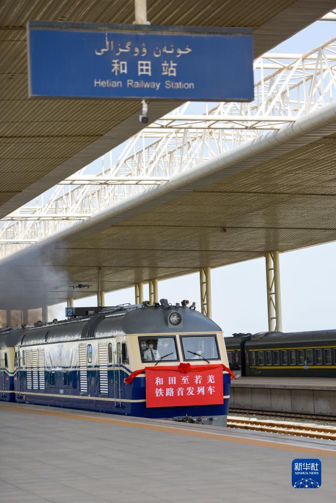 和田至若羌鐵路首趟列車(chē)駛出新疆和田火車(chē)站(2022年6月16日攝)。新華社記者 丁磊 攝