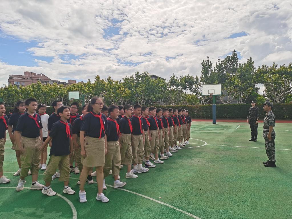9月3日,高帥旗(右一)入學(xué)后被借調至上海一所中學(xué)帶中學(xué)生軍訓。受訪(fǎng)者供圖