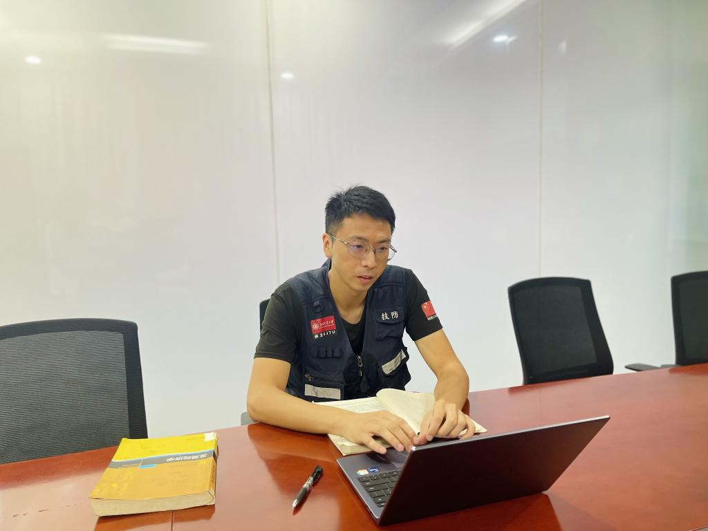 9月5日,蔣家杰在上海交大保衛處工作之余學(xué)習。受訪(fǎng)者供圖
