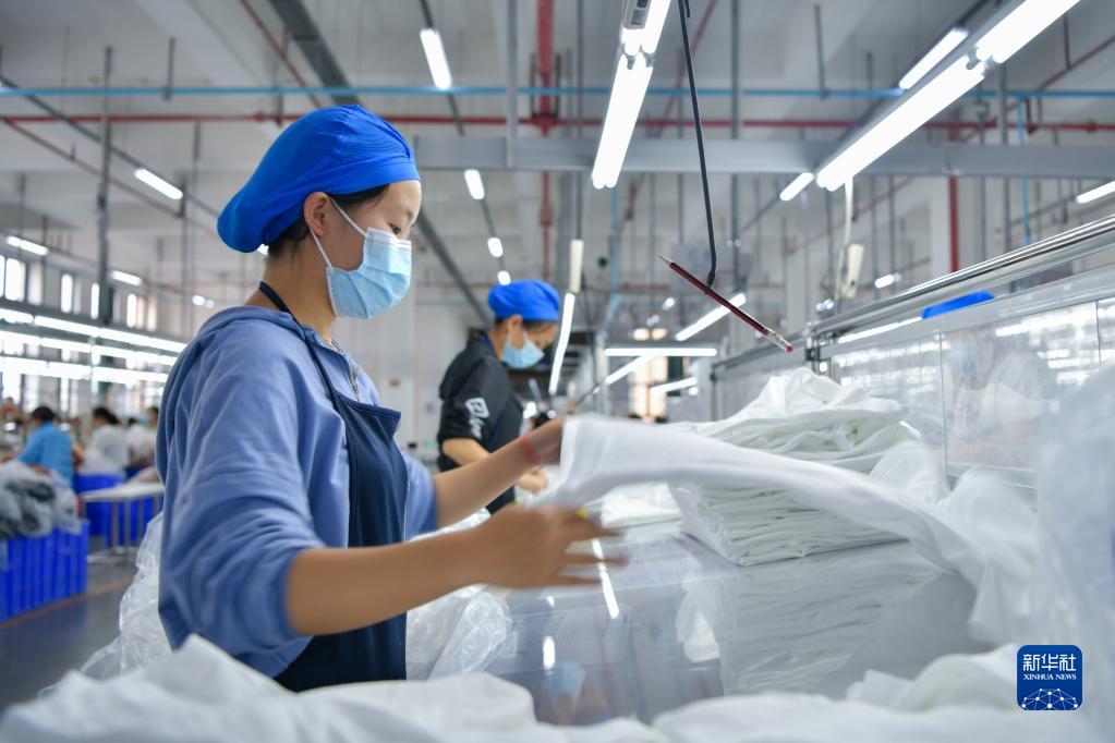 貴州省畢節市晶煌制衣有限公司的工人在趕制訂單(2022年6月17日攝)。新華社發(fā)(張曉勇 攝)