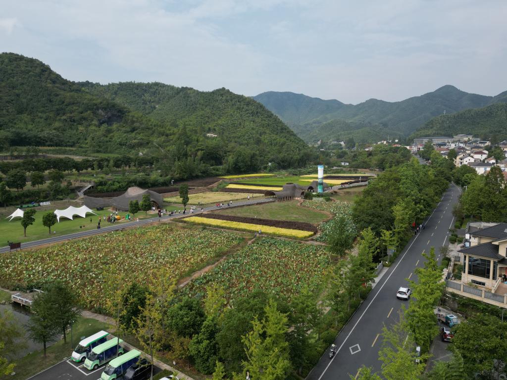 這是9月27日在浙江省安吉縣余村拍攝的稻田畫(huà)。(無(wú)人機照片)。新華社記者崔力 攝