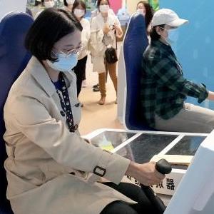 10月7日,觀(guān)眾在“奮進(jìn)新時(shí)代”主題成就展上體驗操縱直升機訓練模擬器。當日是國慶長(cháng)假的最后一天,大批觀(guān)眾來(lái)到北京展覽館參觀(guān)“奮進(jìn)新時(shí)代”主題成就展。新華社記者 王毓國 攝