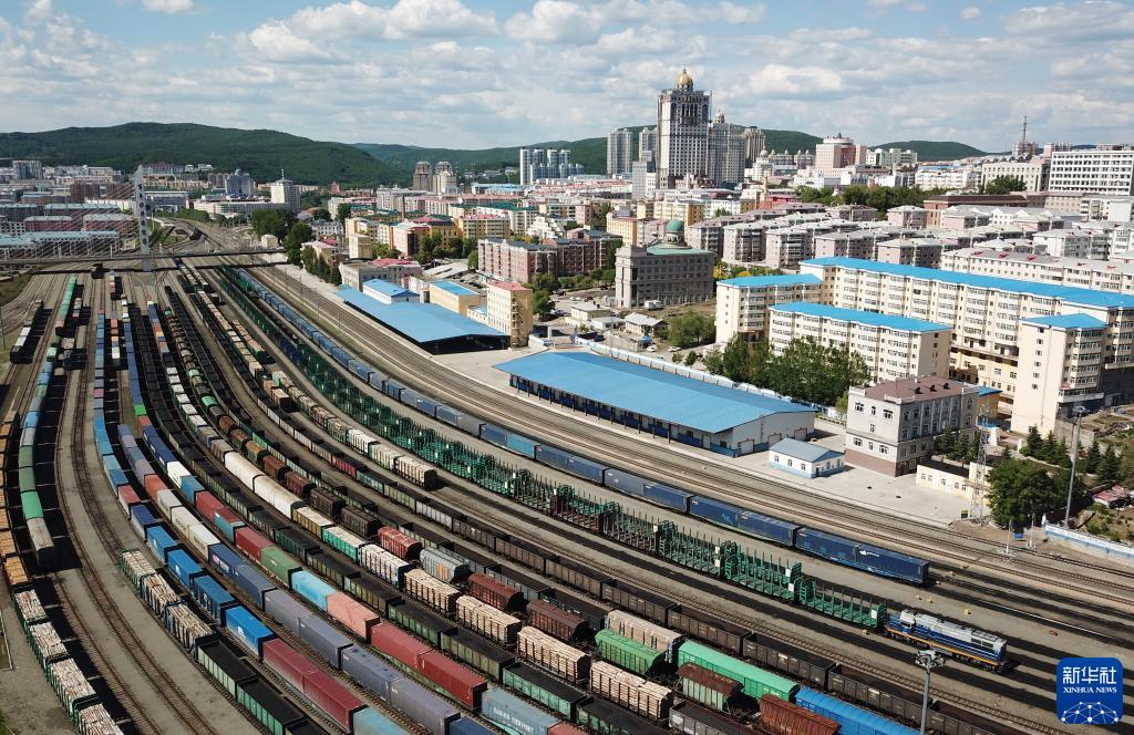 這是2022年6月8日拍攝的中國(黑龍江)自由貿易試驗區綏芬河片區的局部(無(wú)人機照片)。新華社記者 王建威 攝