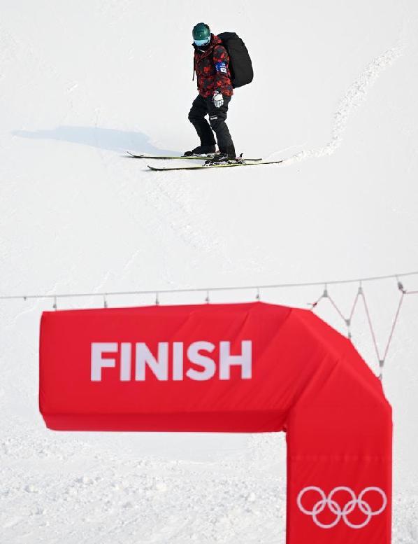 ↑新華社攝影記者在北京冬奧會(huì )高山滑雪賽道上