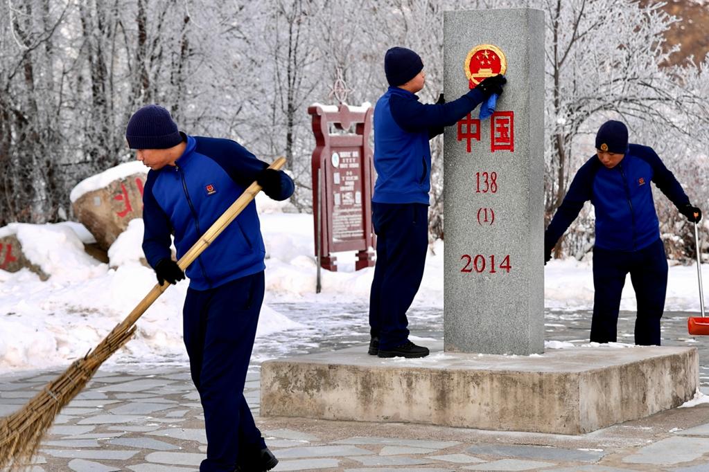 熟練而凝重地擦拭著(zhù)界碑上的積雪,古誓言感慨道,5年來(lái),這座138號界碑伴他們度過(guò)無(wú)數個(gè)清晨,“界碑見(jiàn)證我們風(fēng)霜中的歷練,也堅定了我們駐扎‘極北’、守護百姓的信念?!?/p>