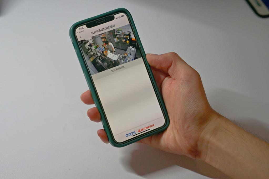 消費者通過(guò)“浙江外賣(mài)在線(xiàn)”平臺查看外賣(mài)商家的后廚實(shí)時(shí)情況。新華社記者林光耀 攝