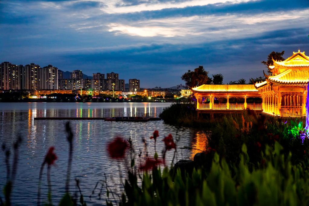 漢豐湖畔的夜景。新華社記者劉潺 攝