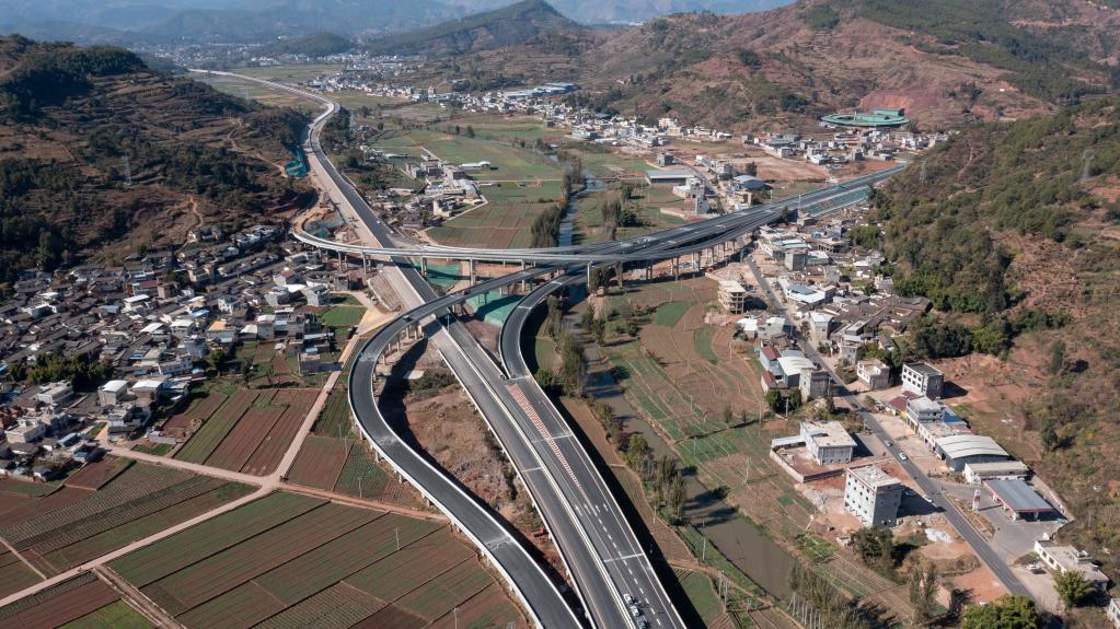 這是11月25日拍攝的沿江高速即將通車(chē)的會(huì )東至會(huì )理段局部(無(wú)人機照片)。新華社記者 胥冰潔 攝