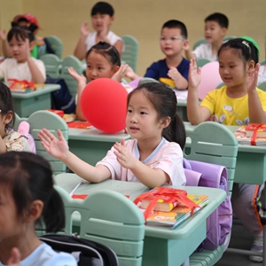 2022年9月1日,河北雄安新區容東片區容和悅容小學(xué)一年級新生在上開(kāi)學(xué)第一課。新華社記者 朱旭東 攝