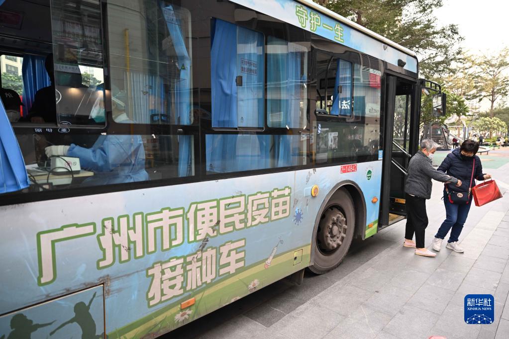 12月12日,在廣州市荔灣區廣鋼新城,老年居民在接種新冠疫苗后走下便民接種車(chē)。新華社記者 鄧華 攝