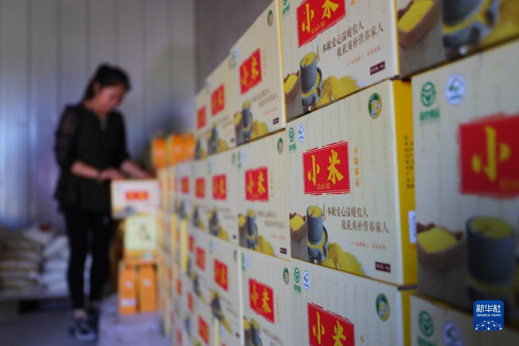 在沈陽(yáng)市康平縣方家屯鎮東小陵村,農民將封裝好的小米裝箱(2022年9月21日攝)。 新華社記者 楊青 攝