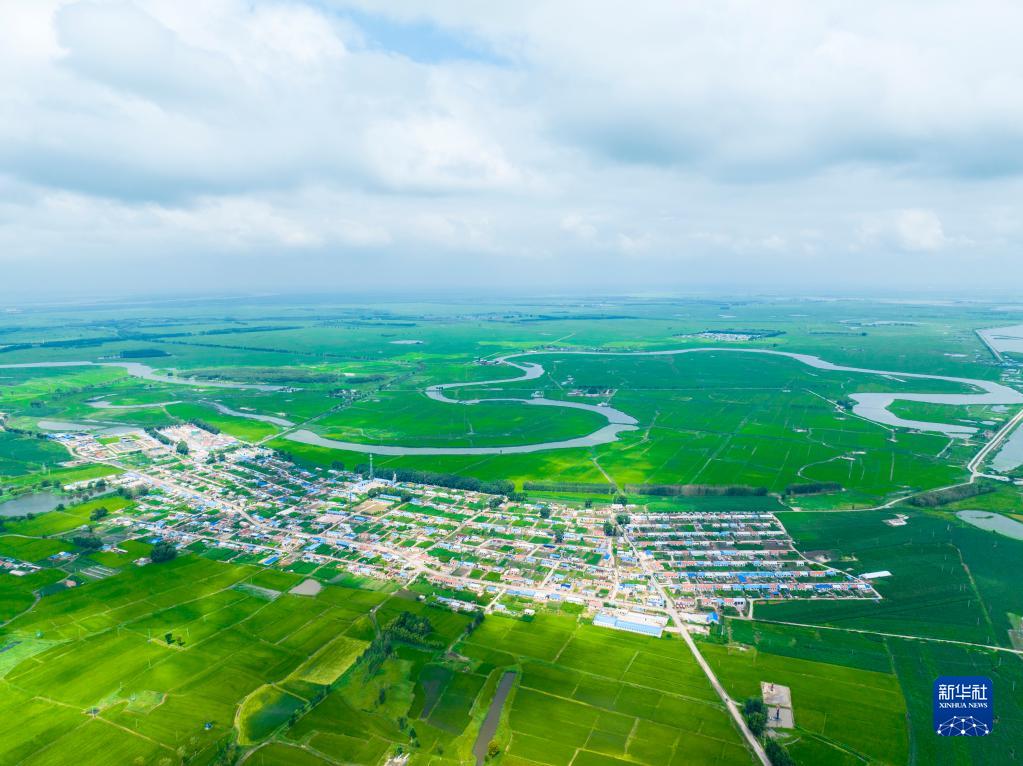 這是2022年7月16日拍攝的吉林省白城市鎮賚縣大屯鎮英臺村稻田(無(wú)人機照片)。新華社記者 王帆 攝