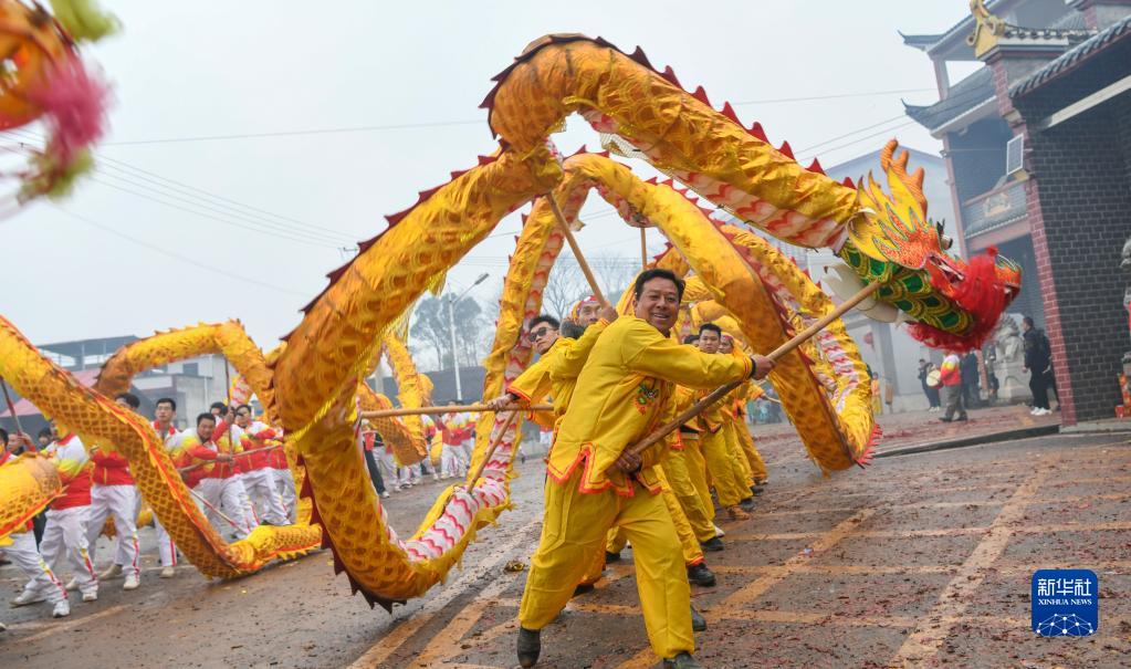 1月22日,湖南省常寧市勝橋鎮合泉村村民在舞龍。新華社發(fā)(周秀魚(yú)春 攝)