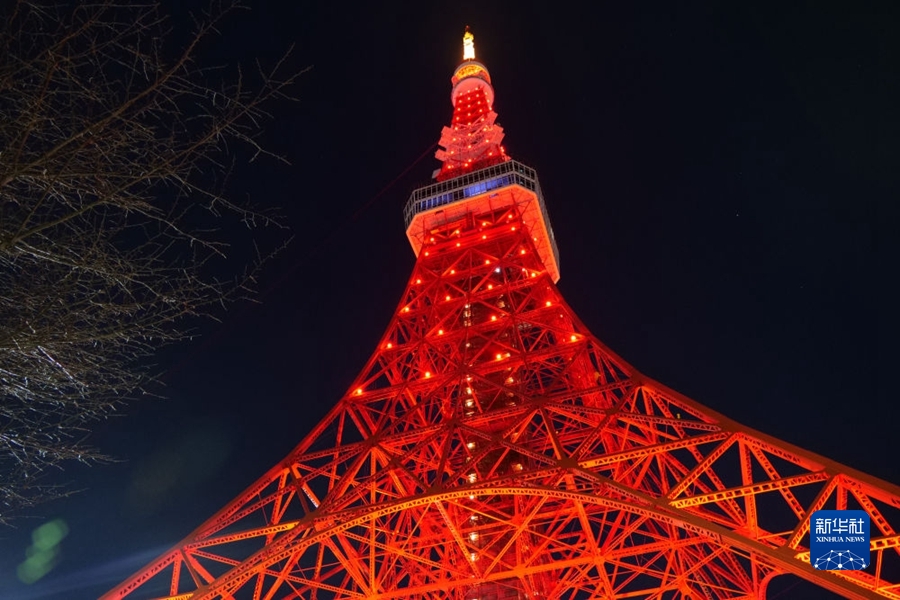 2023年1月21日,日本東京塔亮起“中國紅”。新華社記者 李光正 攝