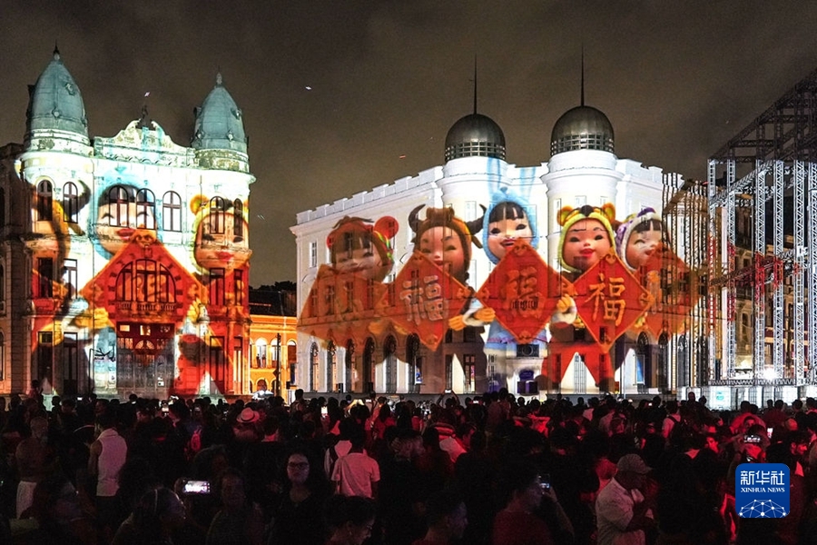 2023年1月19日,在巴西累西腓市舉行的中國春節慶?;顒?dòng)上,大型燈光秀點(diǎn)亮夜空。新華社發(fā)(保羅·洛佩斯攝)