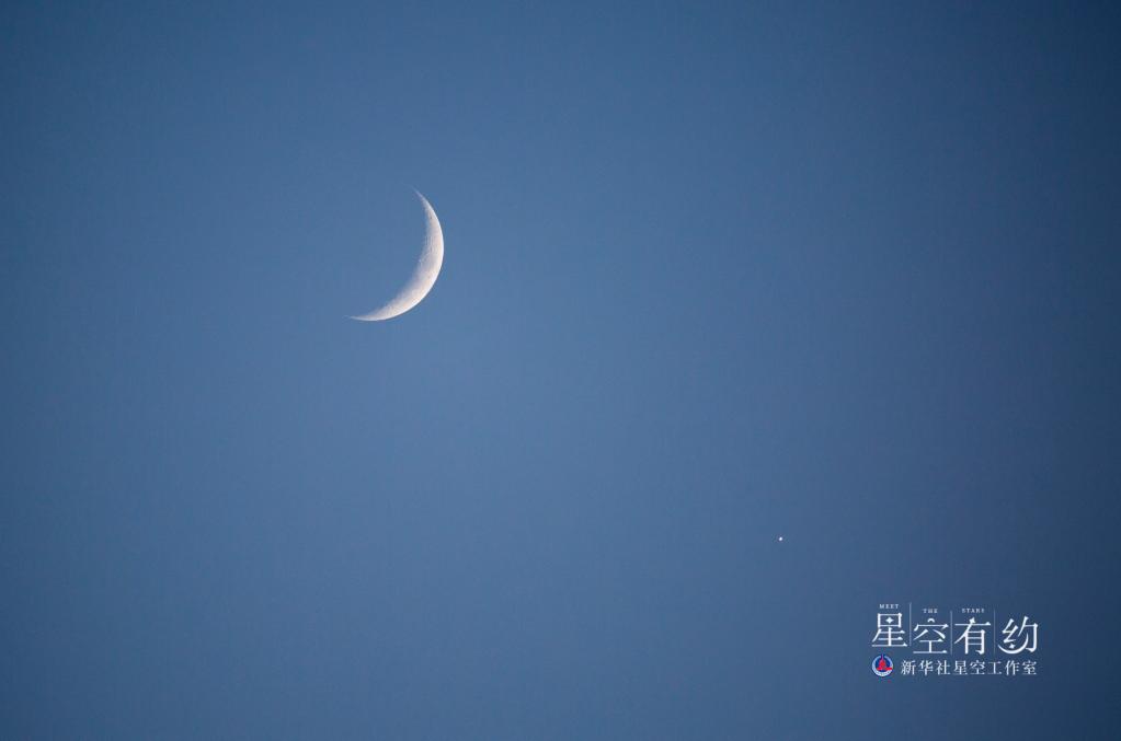 2021年11月8日傍晚在江西省九江市都昌縣拍攝的金星合月。新華社發(fā)(傅建斌攝)