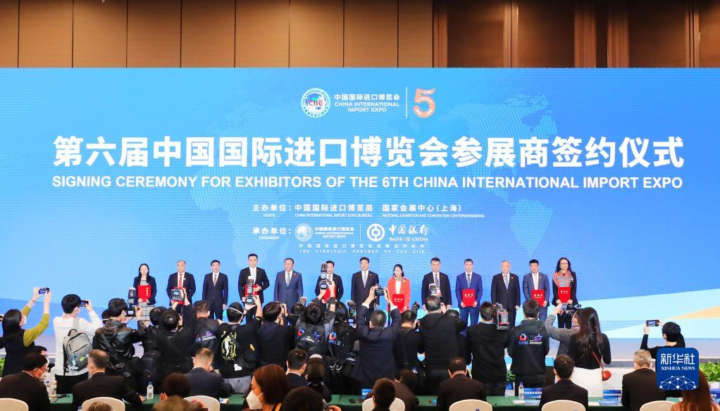 2022年11月6日,2022年中國國際進(jìn)口博覽會(huì )參展商聯(lián)盟大會(huì )在上海舉行。這是在大會(huì )期間進(jìn)行的第六屆進(jìn)博會(huì )參展商簽約儀式。新華社記者 方喆 攝