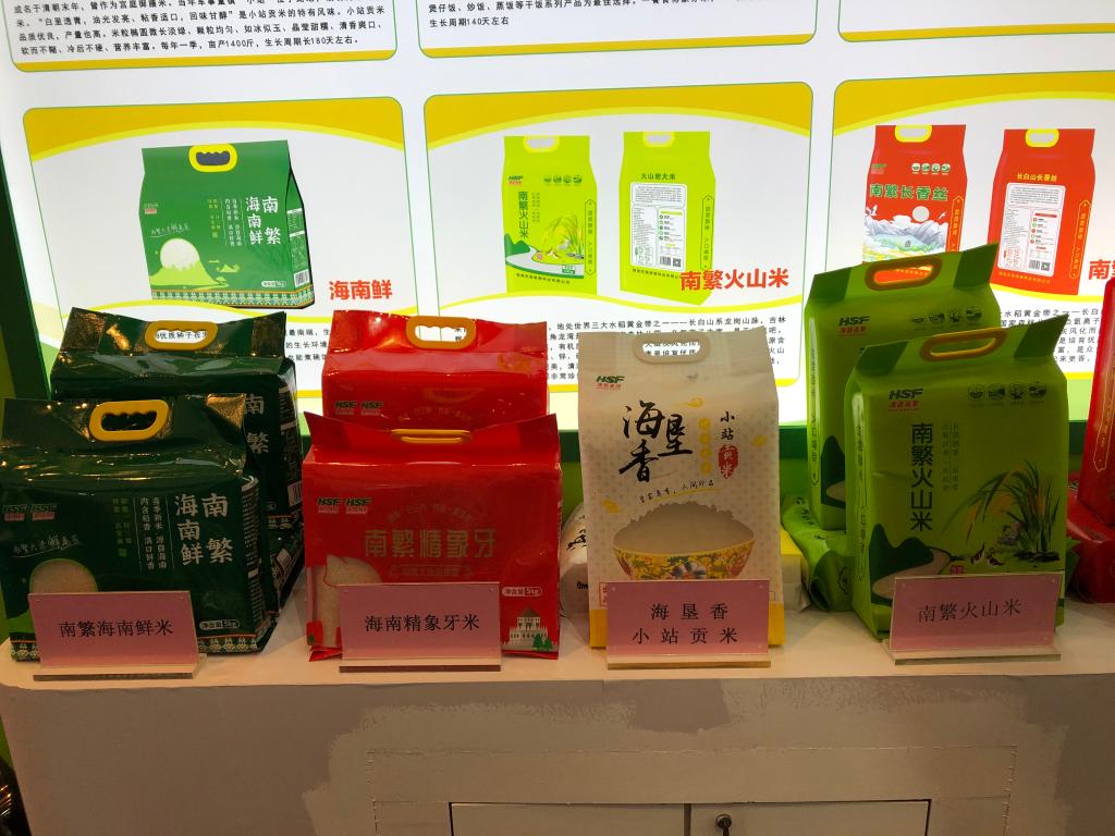 2023中國種子大會(huì )期間稻米商品亮相展區。新華社記者陳凱姿 攝