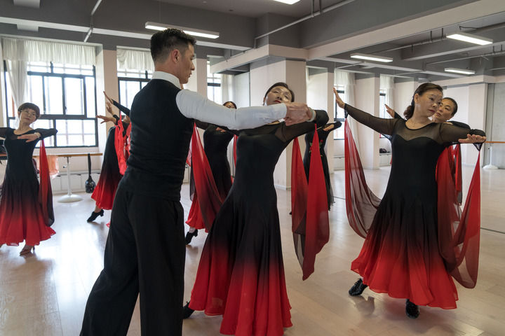 在成都市錦江區喜樹(shù)路社區,居民在老年課堂上舞蹈課(4月26日攝)。新華社記者 唐文豪 攝