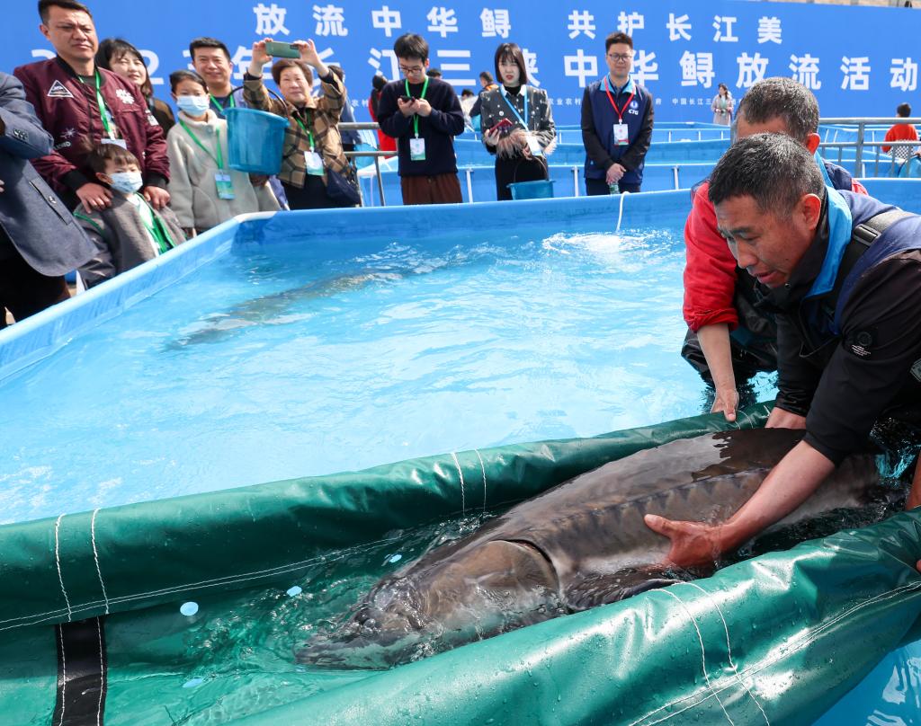 今年3月,10萬(wàn)尾中華鱘在湖北省宜昌市胭脂園長(cháng)江珍稀魚(yú)類(lèi)放流點(diǎn)放歸長(cháng)江。這是三峽集團聯(lián)合國內相關(guān)中華鱘保護機構,連續第68次開(kāi)展流域化中華鱘放流。