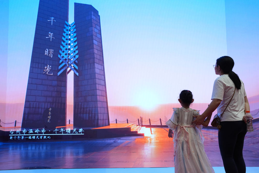 一對母女在杭州舉行的大道之行——“八八戰略”實(shí)施20周年大型主題展覽上觀(guān)看展示浙江建設成就的視頻(2023年9月9日攝)。新華社記者 翁忻旸 攝