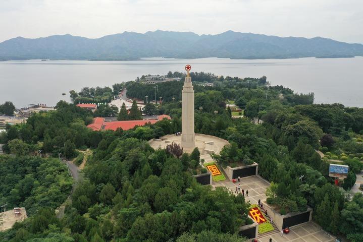 這是河北省石家莊市平山縣西柏坡紀念塔(9月23日攝,無(wú)人機照片)。新華社記者 牟宇 攝