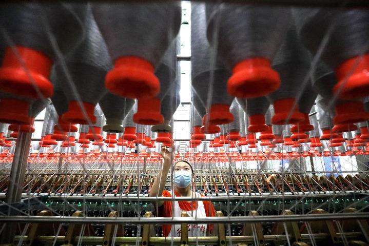 2月16日,工人在河北省石家莊市藁城經(jīng)濟開(kāi)發(fā)區一家化纖企業(yè)生產(chǎn)車(chē)間內工作。新華社記者 駱學(xué)峰 攝