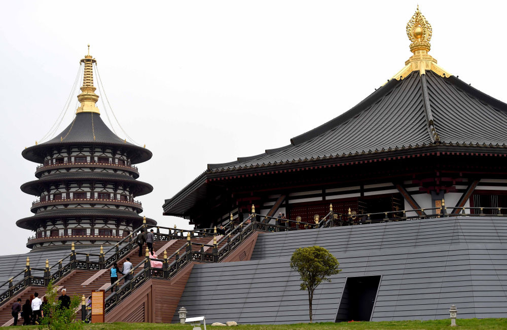 隋唐洛陽(yáng)城國家考古遺址公園內的天堂(左)、明堂(2015年4月11日攝)。新華社記者 李安 攝