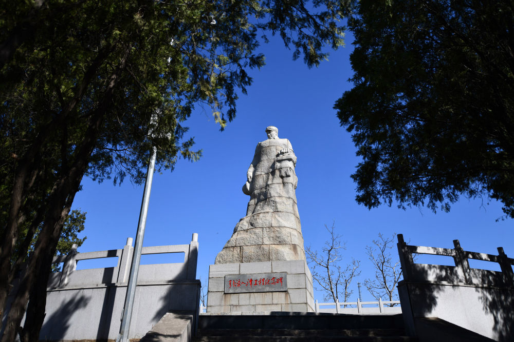在河北省遷西縣拍攝的引灤入津工程紀念碑(2019年4月10日攝)。新華社記者 李然 攝