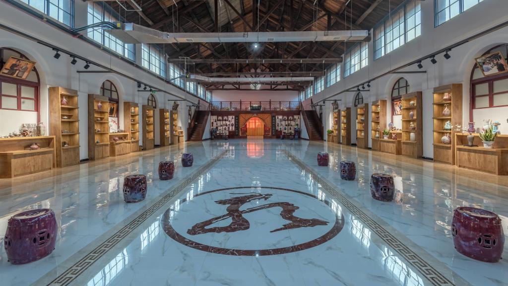 在園區北部入口西側,是面積1800平方米的孔家窯鈞瓷藝術(shù)館。館內陳列的一件件鈞瓷作品,凝結著(zhù)孔家窯匠人多年的心血。在孔家窯鈞瓷藝術(shù)館南側,是以河南省首個(gè)陶瓷實(shí)驗室為基礎修復改造而成的鈞瓷工業(yè)歷史館,館內展示著(zhù)鈞官窯文化和河南省鈞陶瓷工業(yè)的歷史變遷。
