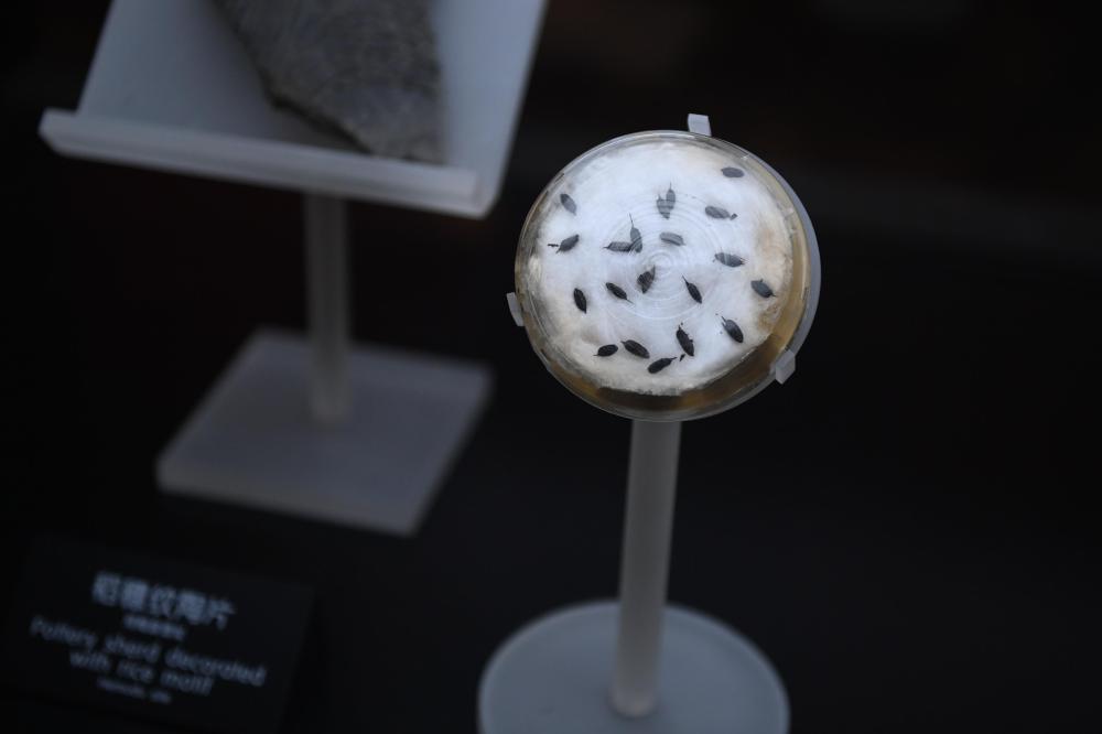 2023年11月3日在余姚市河姆渡遺址博物館拍攝的出土稻谷。新華社記者 黃宗治 攝