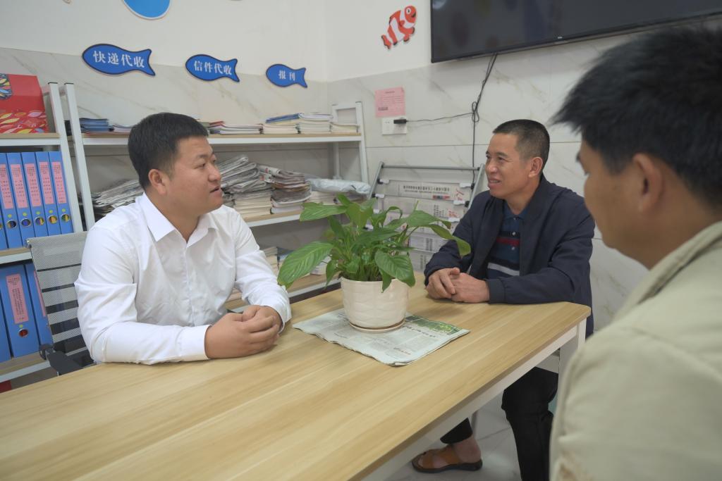 11月19日,下岐村黨支部書(shū)記陳凌(左一)在聽(tīng)取村民意見(jiàn)。新華社記者 林善傳 攝
