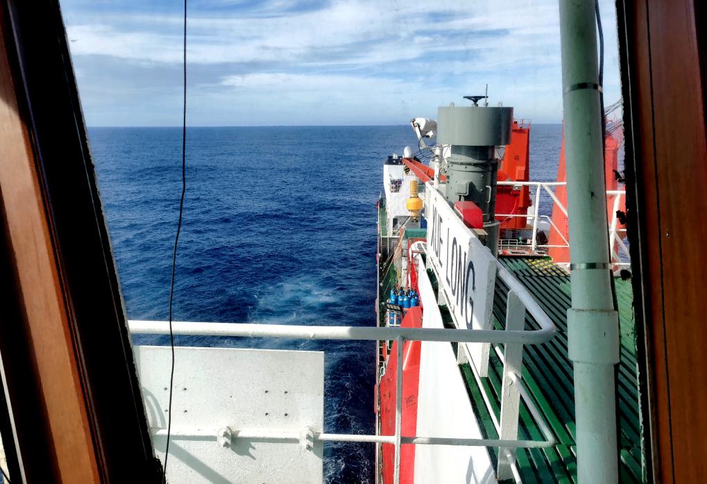 11月20日,“雪龍”號駛入南緯40度西風(fēng)帶的航行景象。(中國第40次南極考察隊供圖)