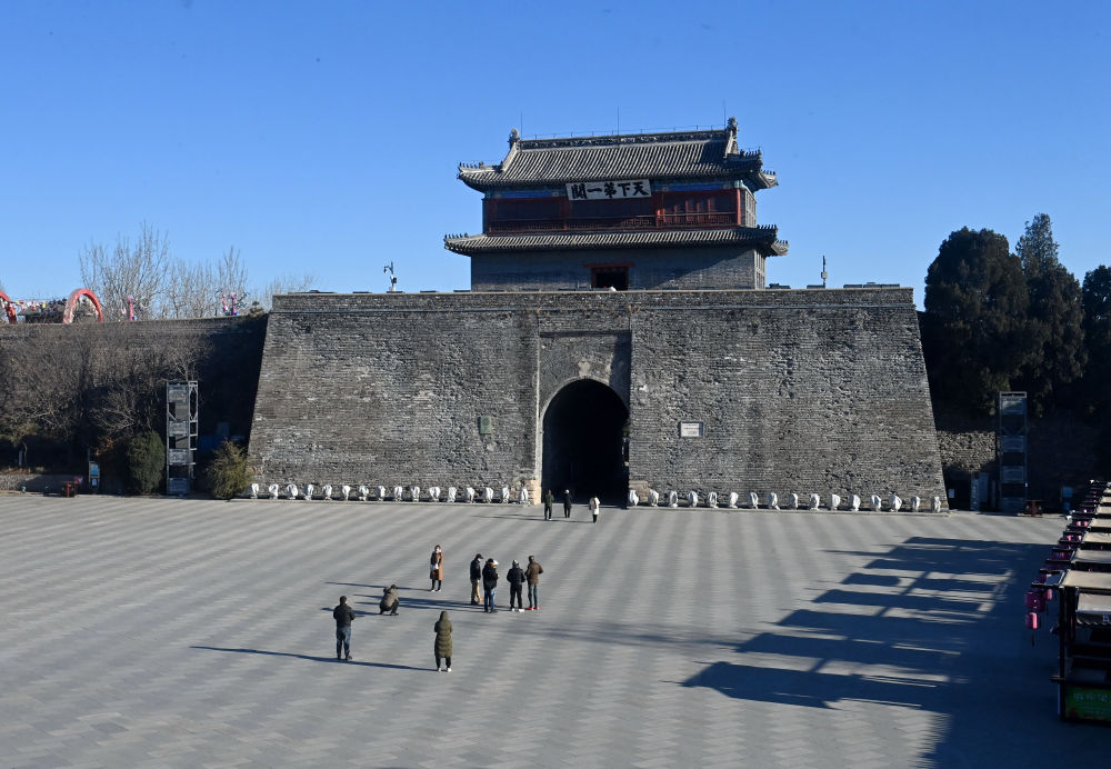 游客在河北省秦皇島市山海關(guān)區天下第一關(guān)景區游覽(2023年11月29日攝)。新華社記者 楊世堯 攝