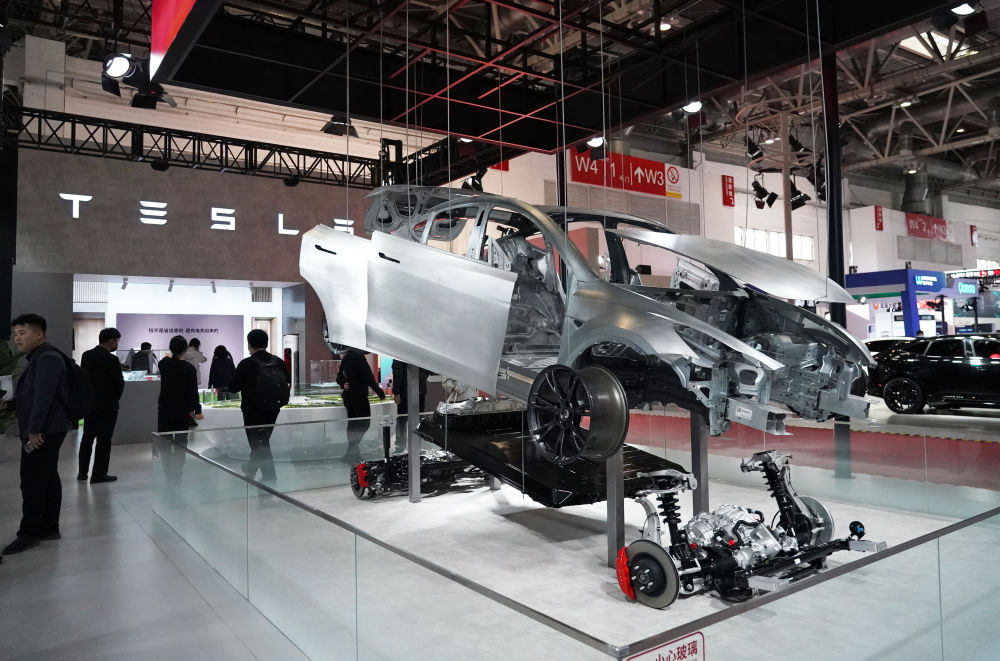 這是在首屆中國國際供應鏈促進(jìn)博覽會(huì )現場(chǎng)拍攝的特斯拉展位(2023年11月30日攝)。新華社記者 任超 攝