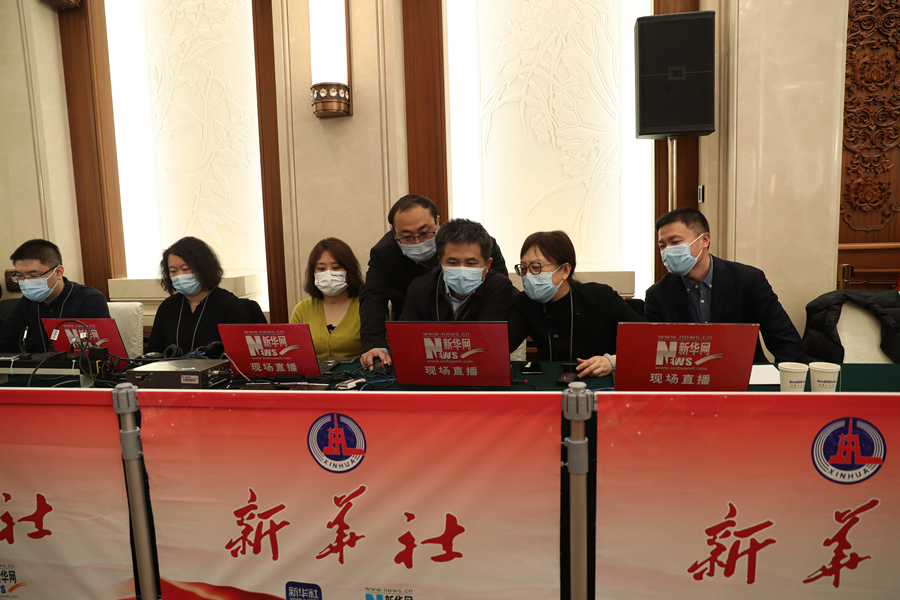 3月3日,全國政協(xié)十四屆一次會(huì )議新聞發(fā)布會(huì )在北京舉行,大會(huì )新聞發(fā)言人郭衛民向中外媒體介紹本次大會(huì )有關(guān)情況并回答記者提問(wèn)。圖為本網(wǎng)記者在現場(chǎng)做直播準備工作。新華網(wǎng)記者 焦鵬 攝