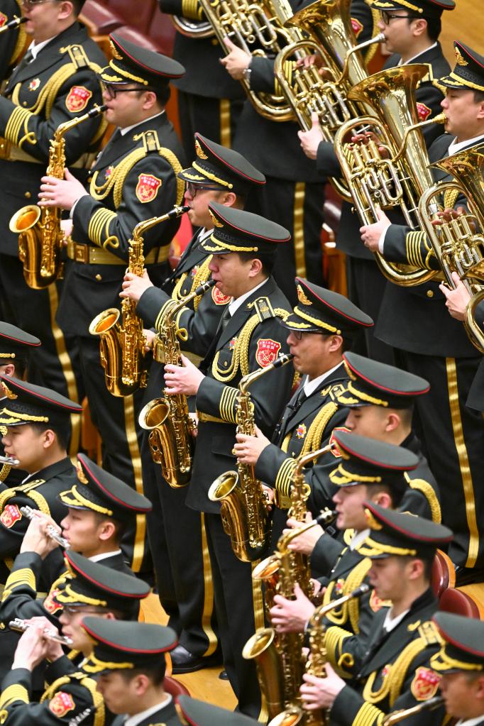 3月11日,中國人民政治協(xié)商會(huì )議第十四屆全國委員會(huì )第一次會(huì )議在北京人民大會(huì )堂舉行閉幕會(huì )。這是軍樂(lè )團在演奏。