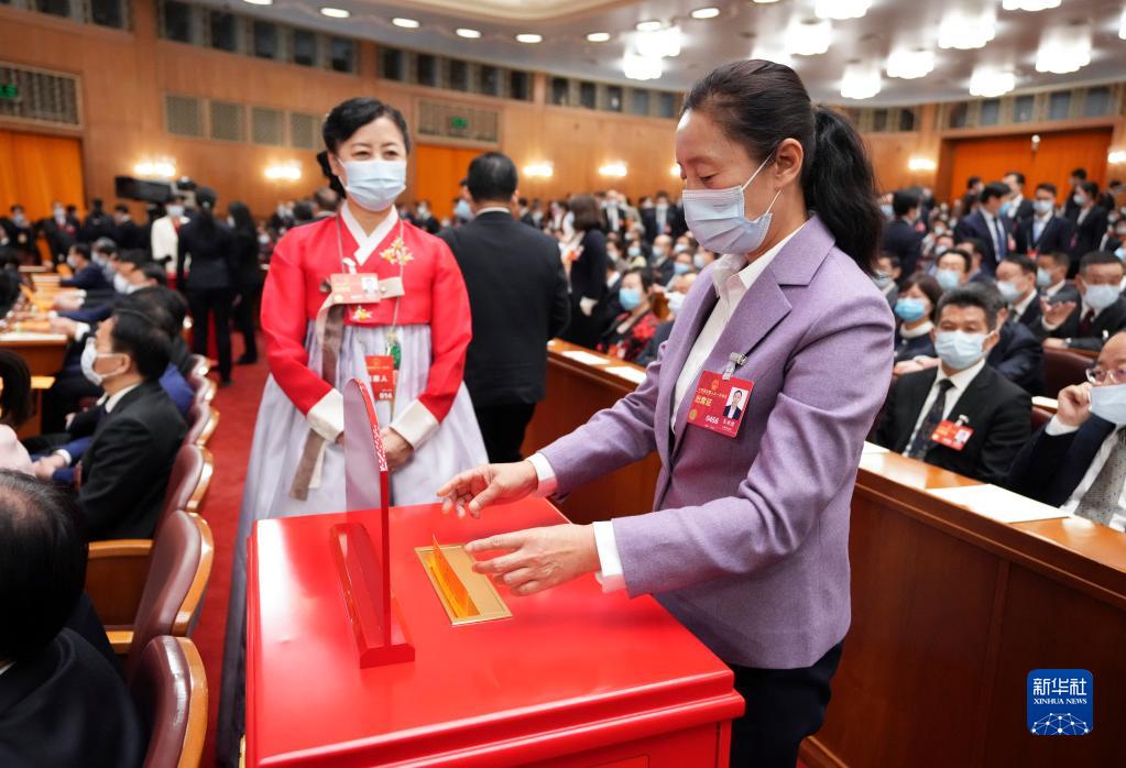 3月12日,十四屆全國人大一次會(huì )議在北京人民大會(huì )堂舉行第五次全體會(huì )議。這是代表在投票。
