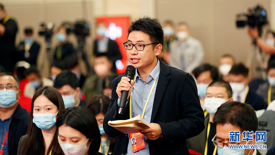 10月17日(星期一)15:00,二十大新聞中心在梅地亞新聞中心二層新聞發(fā)布廳舉辦第二場(chǎng)記者招待會(huì )。圖為人民日報記者在分會(huì )場(chǎng)提問(wèn)。(新華網(wǎng) 陳杰 攝)