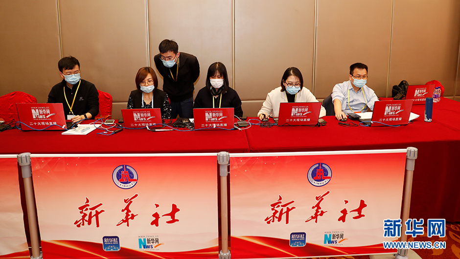 10月18日(星期二)19:30,二十大新聞中心在梅地亞新聞中心二層新聞發(fā)布廳舉辦第二場(chǎng)集體采訪(fǎng)。圖為記者在現場(chǎng)工作。(新華網(wǎng) 陳杰 攝)