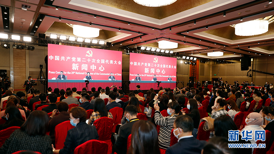 10月20日(星期四)10:00,二十大新聞中心在梅地亞新聞中心二層新聞發(fā)布廳舉辦第四場(chǎng)記者招待會(huì )。圖為記者招待會(huì )分會(huì )場(chǎng)現場(chǎng)。(新華網(wǎng) 陳杰 攝)