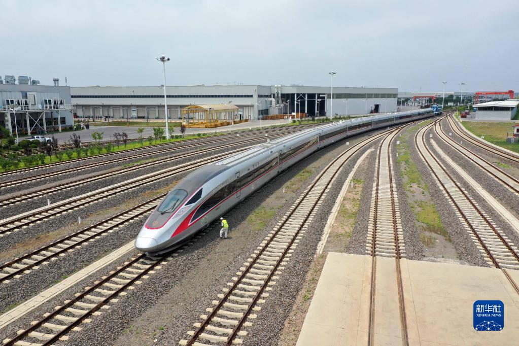 在位于山東青島的中車(chē)四方股份公司,一輛復興號列車(chē)正在出廠(chǎng)(2021年7月1日攝)。新華社發(fā)