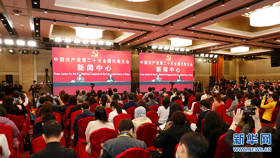10月21日(星期五)10:00,二十大新聞中心舉辦第五場(chǎng)記者招待會(huì )。圖為記者招待會(huì )分會(huì )場(chǎng)現場(chǎng)。(新華網(wǎng) 陳杰 攝)