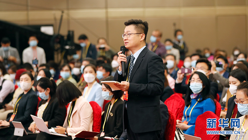 10月21日(星期五)10:00,二十大新聞中心舉辦第五場(chǎng)記者招待會(huì )。圖為中央廣播電視總臺記者在分會(huì )場(chǎng)提問(wèn)。(新華網(wǎng) 陳杰 攝)