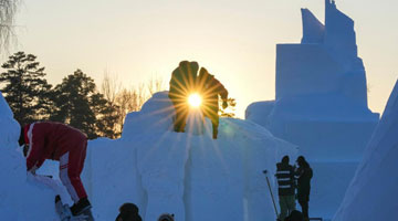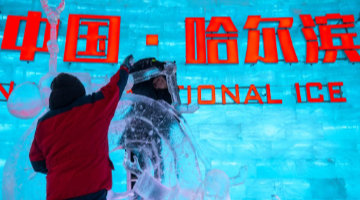 哈爾濱國際雪雕比賽:“三九”天 露芳容