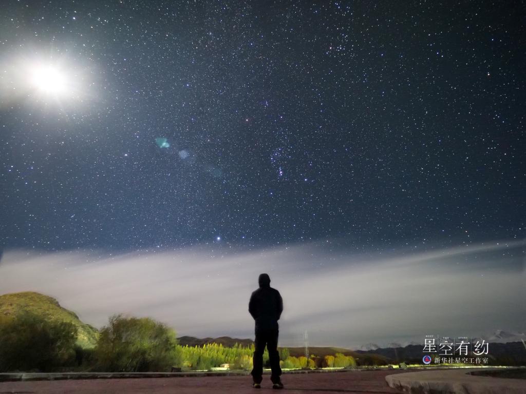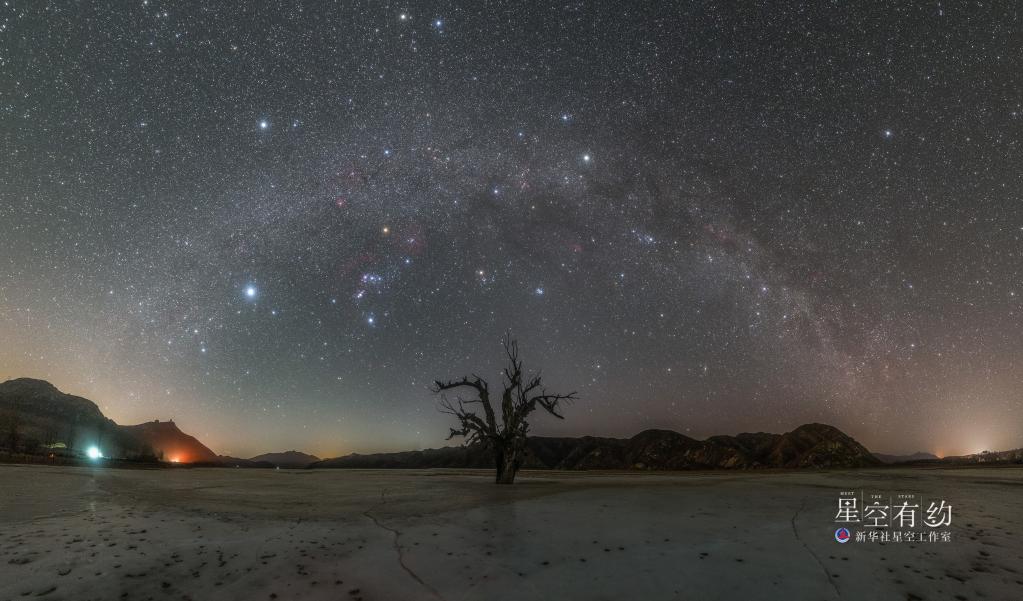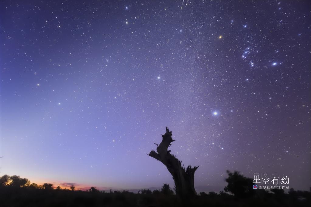 北京市天文愛(ài)好者王俊峰2019年10月7日在新疆哈密伊吾胡楊林拍攝的獵戶(hù)座(參宿三星清晰可見(jiàn))。(本人供圖)
