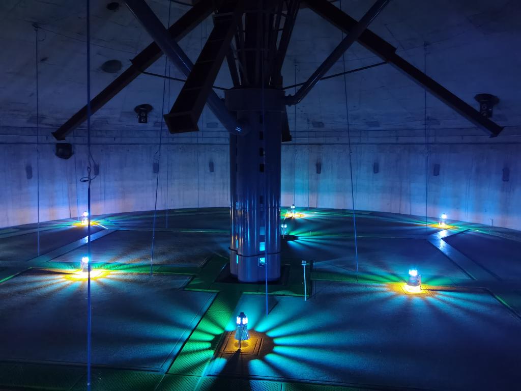 淺圓倉內,10盞藍色的多光譜紫光燈發(fā)出淡淡藍光,稻谷整齊而平坦地存放在幾大塊區域內?!白瞎鉄艨梢院芎玫卣T殺可能在糧倉出現的30多種害蟲(chóng)?!痹搨}保管員閆科向記者介紹。