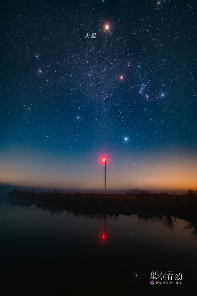 福建省天文愛(ài)好者陳捷陽(yáng)2020年7月24日在青海省大柴旦翡翠湖拍攝的火星。(本人供圖)