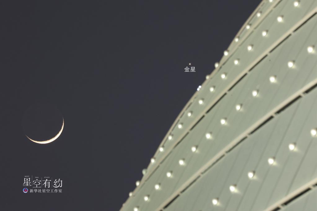 這是北京市天文攝影愛(ài)好者王俊峰2023年2月22日在北京市西城區拍攝的金星伴月牙。(本人供圖)